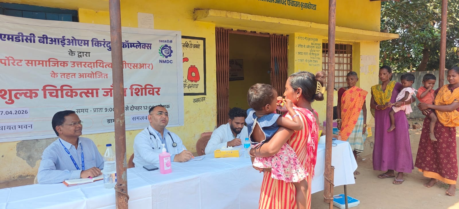एनएमडीसी द्वारा ग्राम पंचायत समलवार में निःशुल्क चिकित्सा जांच शिविर का किया गया आयोजन