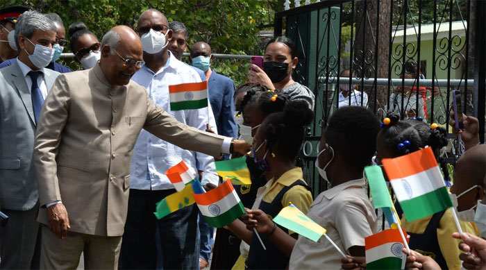 सेंट विंसेंट और ग्रेनेडाइंस पहुंचने पर राष्ट्रपति रामनाथ कोविंद को दी गई 21 तोपों की सलामी