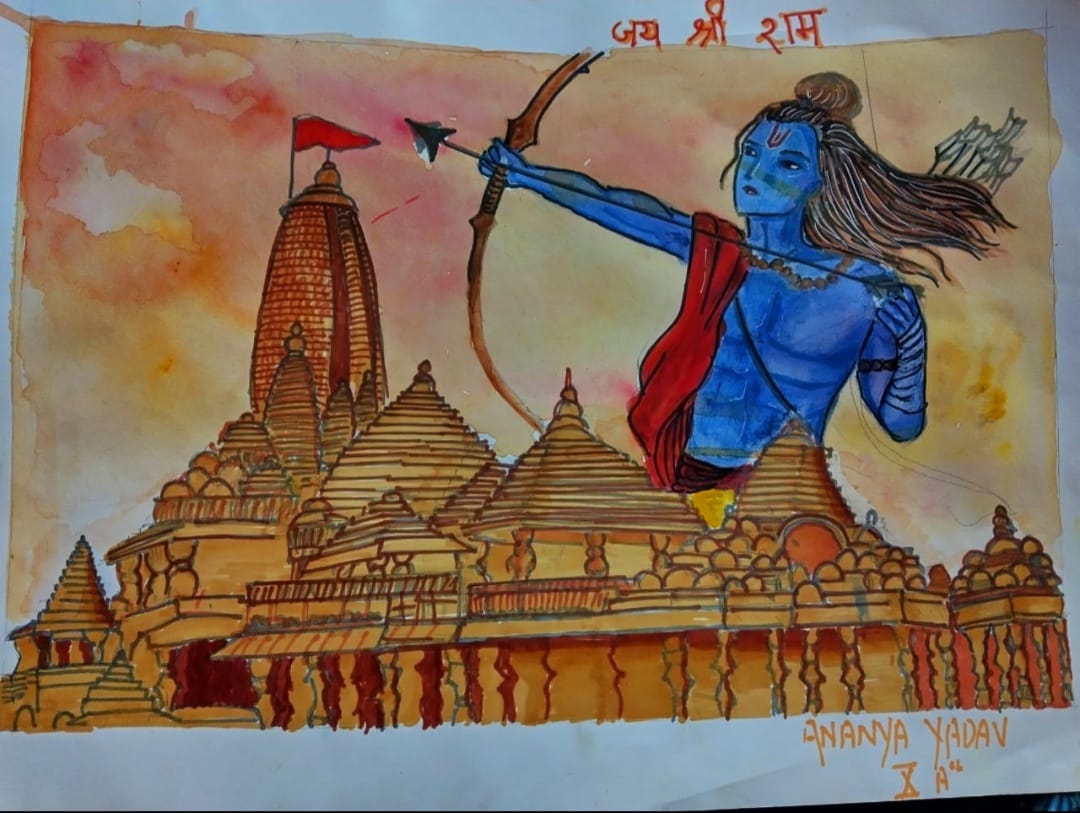 श्री रामलला जी के स्वागत में छात्रा ने की मन्दिर की आकर्षक चित्रकारी