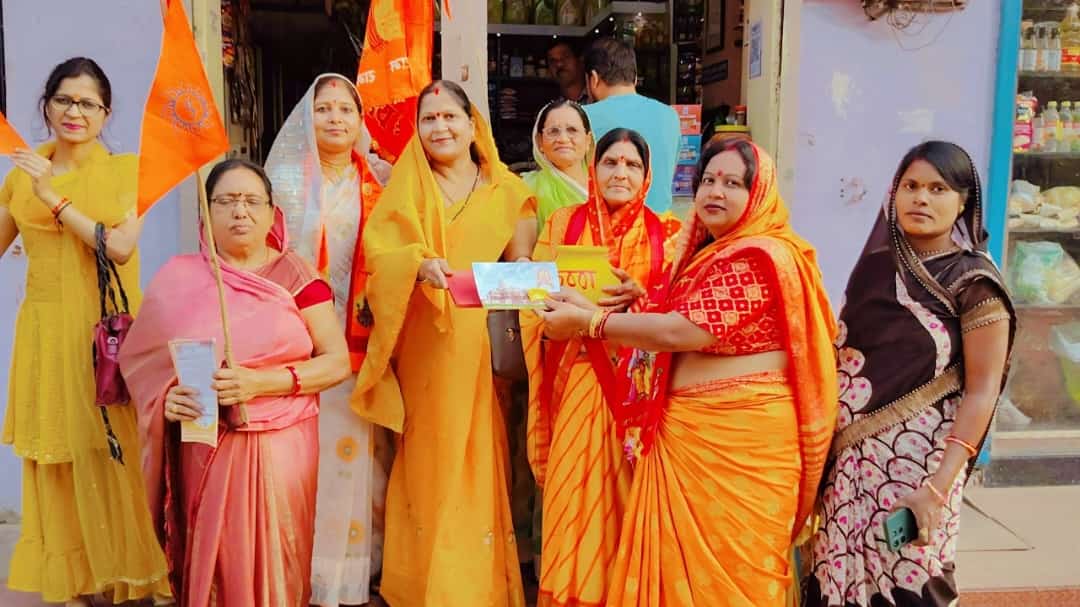 अयोध्या से आए अक्षत कलश और निमंत्रण पत्र का वितरण