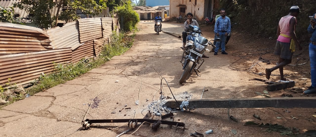 युवती के ऊपर गिरी बिजली पोल,युवती को सिर पर आई गंभीर चोट