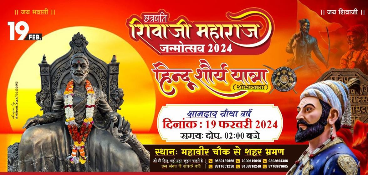 आज शहर मैं छत्रपति शिवाजी महाराज की जयंती के अवसर पर निकलेगी हिन्दू शौर्य यात्रा