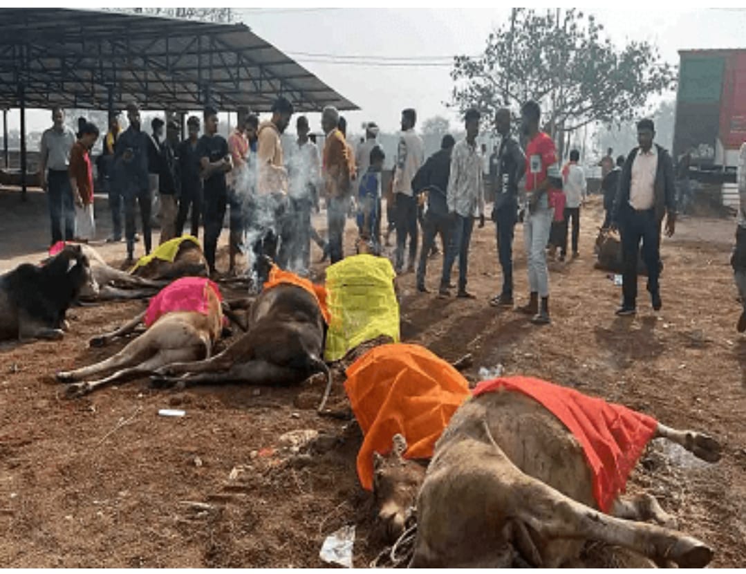 स्थानीय निवासियों ने मवेशियों से भरी ट्रक को पकड़ा ,जिसमें 13 गाय मृत हालत में मिली