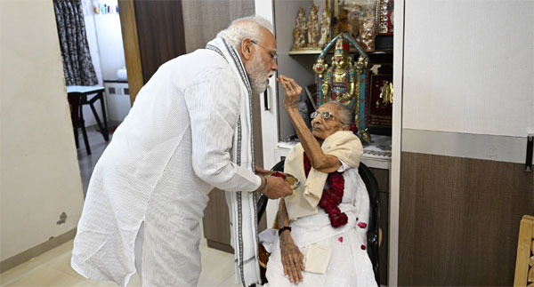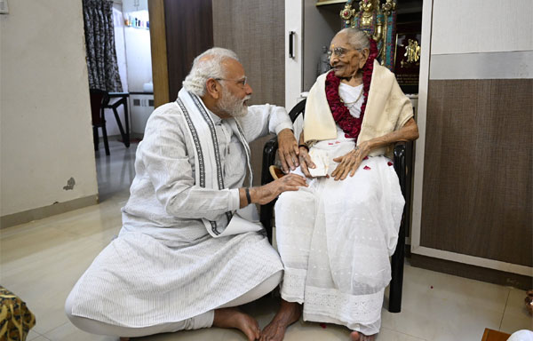 पीएम मोदी ने मां हीराबेन से मिलकर उन्हें 100वें जन्मदिन की शुभकामना दी